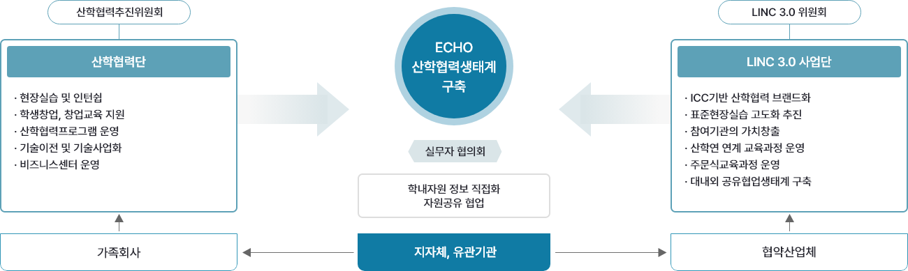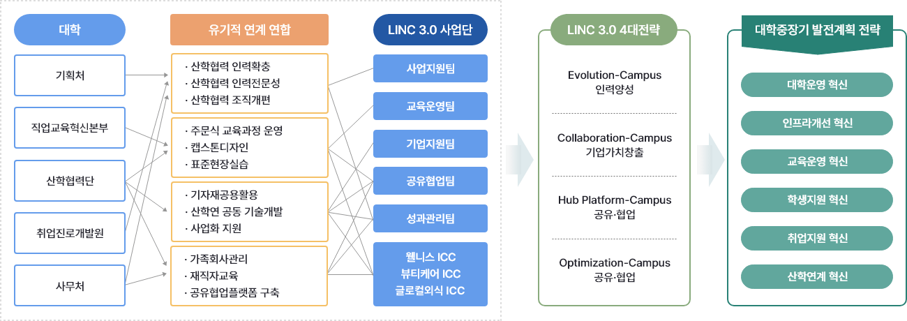 LINC 3.0 사업단과 대학본부 조직과의 유기적인 협업체계 구축 계획
